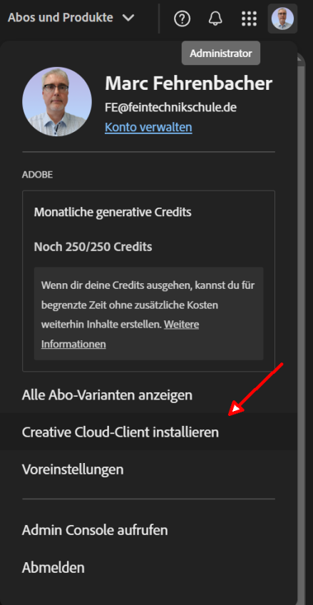 Bitte legen Sie sich unter https://account.adobe.com einen Account (Adobe ID) mit dieser E-Mailadresse an. Einige Tage später wird unser Administrator Sie frei schalten und Sie erhalten eine Begrüßungsmail.